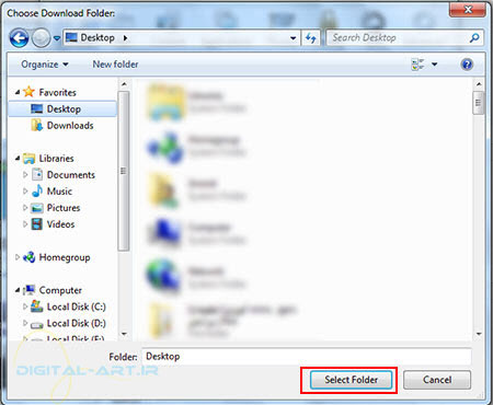 و در نهايت بر روي نوشته Select Folder كليك كنيد تا پوشه جديد انتخاب شود.